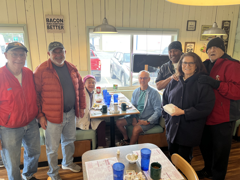 breakfast instead of biking. We had 7 people show up for breakfast at Doe