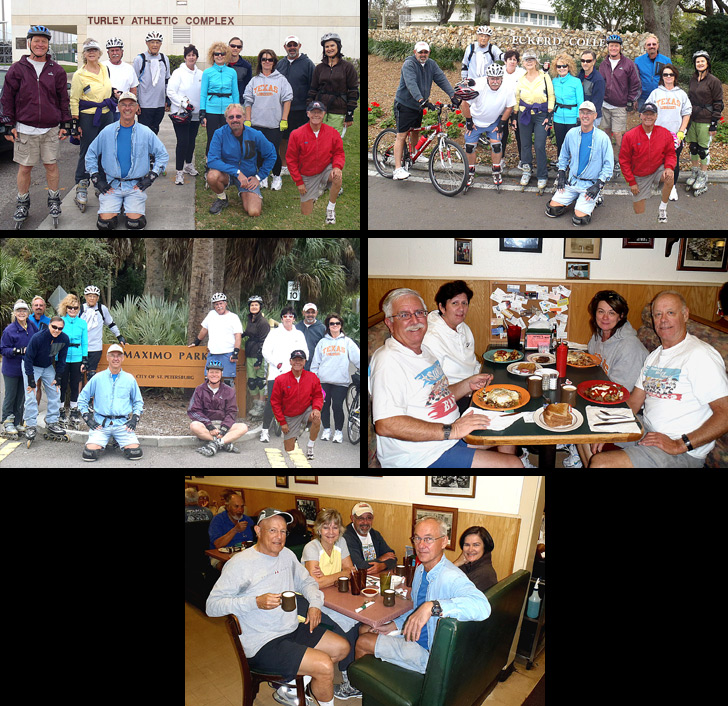 Another Beautiful Day in Paradise. Well....it was overcast, in the 60's and a few sprinkles fell on us but still a great day for blading/bicycling. Absentees Paula, Glenn & Sandy R, Tom H, Glennis and Karen H joined us. New bicycler Cherie M came. Welcome all. We voted and decided to do the Eckerd College Trail. We took group pictures at the Maximo Park entrance, inside the Eckerd College Campus and at the Eckerd College entrance sign. We had to stay basically grouped up as our route was new to all of us. We skated right by the guard shack at the Eckerd College campus entrance and waved at the guard as we went by. John L had been on the campus before and sort of guided us around. Besides doing the Eckerd College Trail and campus we did the Loggerhead Marina, Maximo Marina and some of Maximo Moorings. A few skipped the Maximo Moorings part and probably only did about 9.5 miles. The rest did about 11.6 miles as indicated by Dee. We had 4 bicyclists. Karen H and Cherie M became Sponsors. Thanks for the web site support Karen H and Cherie M.
