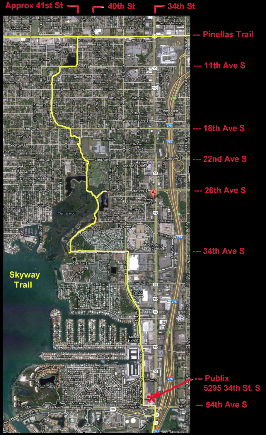 Skyway Trail runs from the Pinellas Trail at approximately 41st St. to the